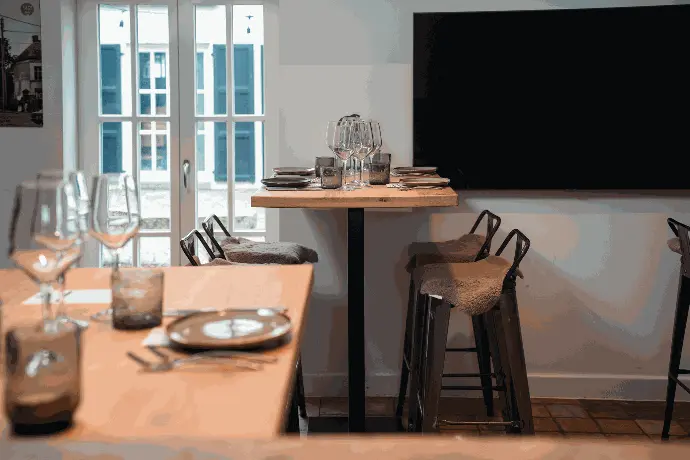 Voor meer intieme bijeenkomsten, zoals een zakendiner, biedt onze 'Bar' ruimte aan gezelschappen met een grote smart-tv voor presentaties of ontspanning. Beide ruimtes kunnen worden aangepast aan jouw specifieke wensen, zodat je evenement perfect verloopt.