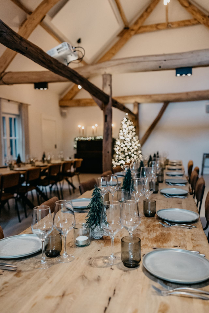 Onze gerenoveerde schuur is een prachtzaal met open keuken, waar plaats is voor 25 tot 80 personen.
